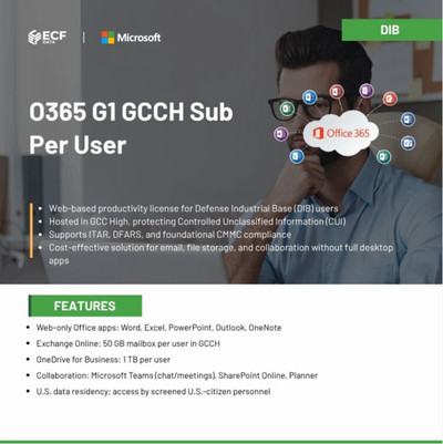 Strengthen your compliance and secure your operations with the O365 G1 GCCH Sub Per User license—now available from the ECF Cloud Solution Store at a competitive $15.50 per user.